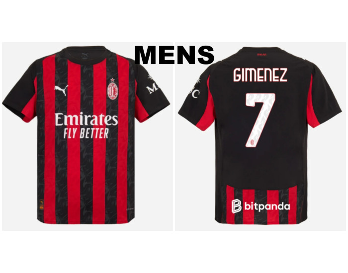 Channel the spirit of the San Siro with this AC Milan Black and Red Home Jersey for the 2025-2026 season, inspired by the electrifying play of number 7, Gimenez . This jersey is crafted for the passionate Rossoneri supporter who lives and breathes the club's iconic colors.
