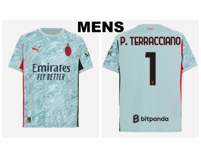 Command the penalty area with style in this Ac Milan Blue Home Goalkeeper Jersey for the 2025-2026 season, inspired by the presence of P. Terracciano . Designed for the fans who know a team's strength starts from the back, this jersey combines a bold, eye-catching color with the spirit of a true number one.