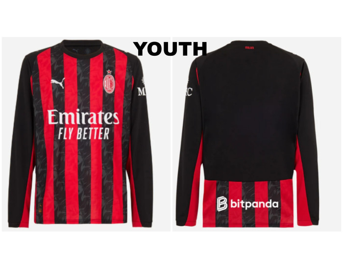 Become part of the legend. Now you can create your very own piece of AC Milan history with our Youth Customize Authentic Black and Red Home Long Sleeve Jersey for the 2025-2026 season. This isn't just a jersey; it's your personal canvas to show your unique passion for the Rossoneri. Design the kit you've always dreamed of wearing at San Siro.